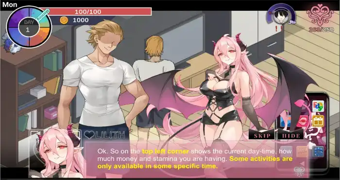 在90天内让女主角堕落的模拟游戏。游戏每天分为早上、下午、晚上、午夜四个时段,每个时段可选择不同行动,如打工赚钱、与女主角互动、购买道具等。包含多种小游戏(如猜拳、送货、射击等),来推进亲密度与剧情进展。